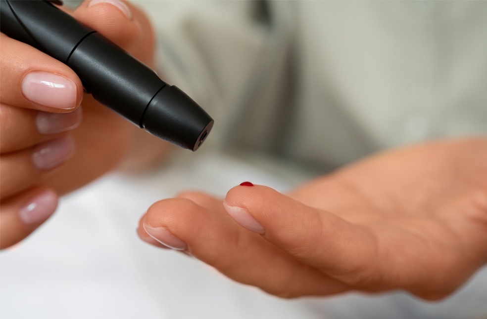 A woman taking a finger-prick blood test