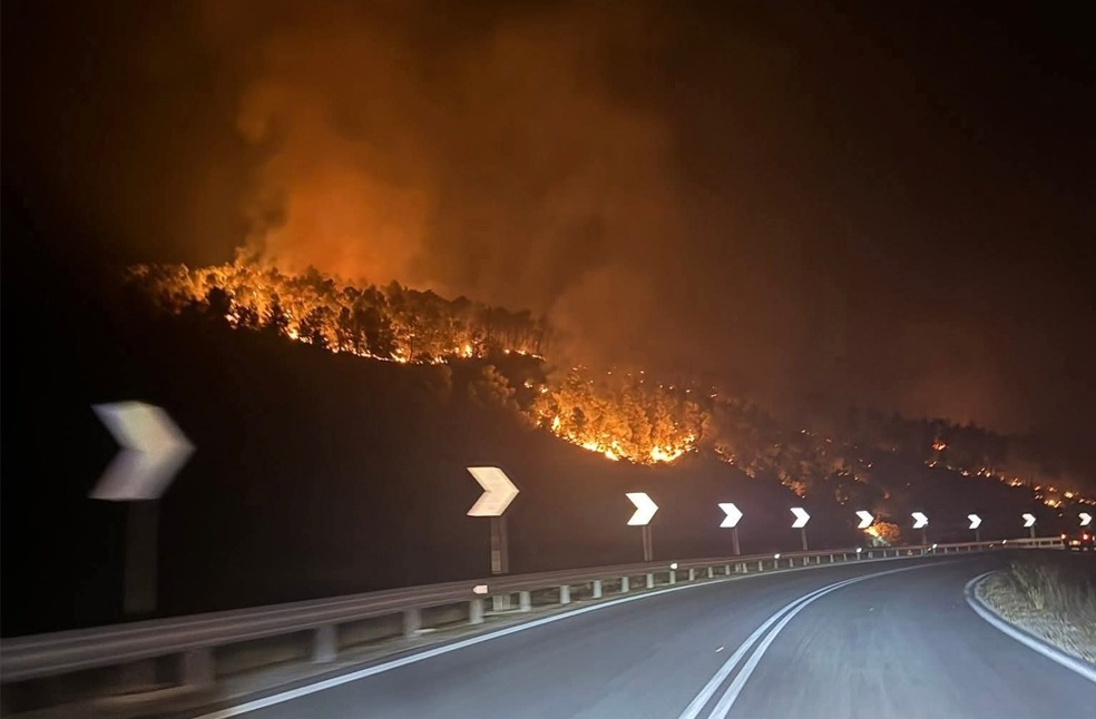 On the island of Evia, a second fire near Pissona has escalated beyond control, advancing quickly toward Afrati. Flames have damaged power infrastructure, leaving several villages, including Pournos and Mistros, without electricity.