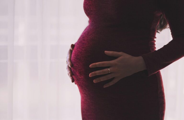 Pregnant woman holding her stomach during pregnancy