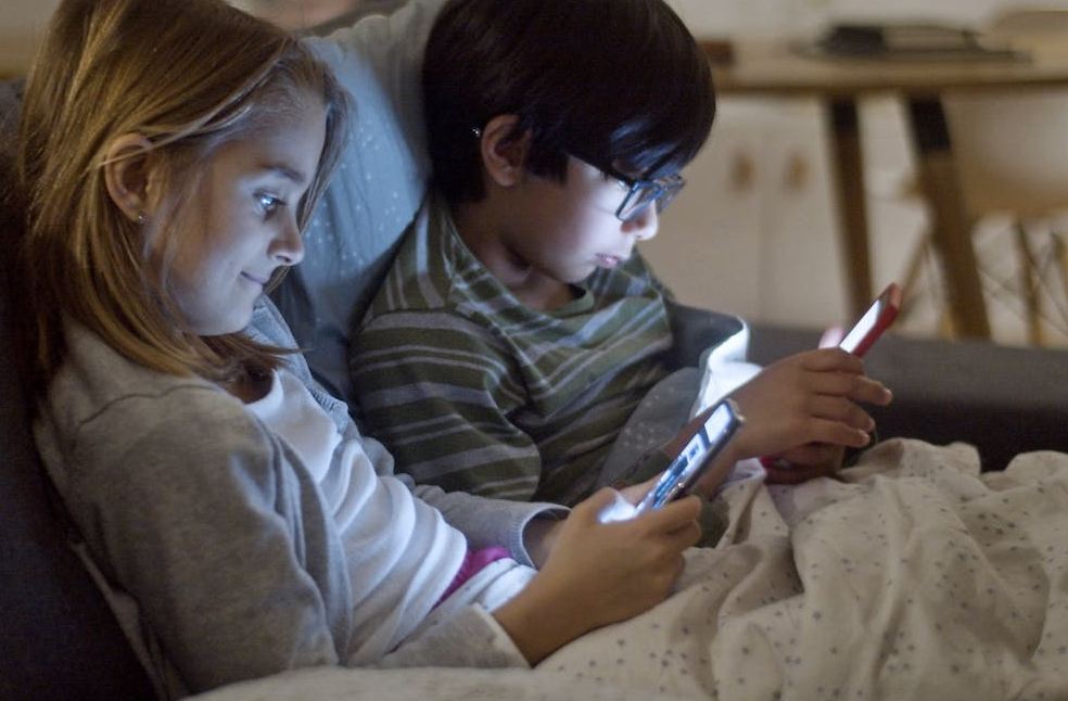 Kids Using Gadgets While on a Sofa Bed