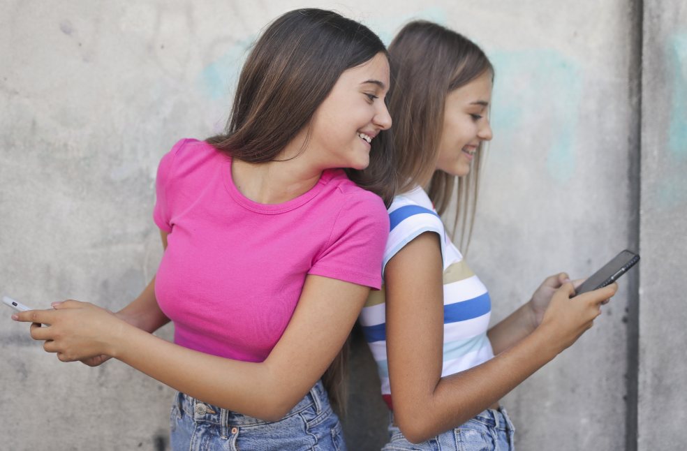 two young girls use the smartphone